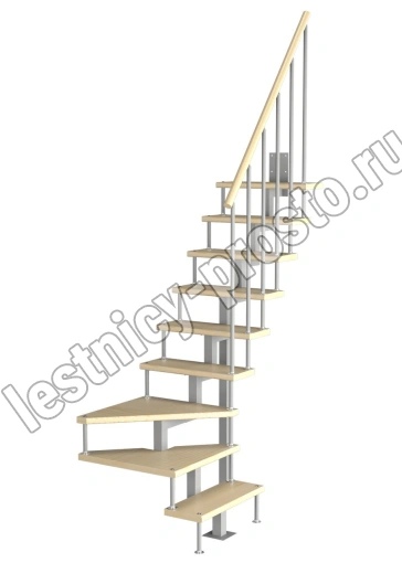 Модульная малогабаритная лестница Компакт 2025-2250, Серый, Бук, Нержавеющая сталь