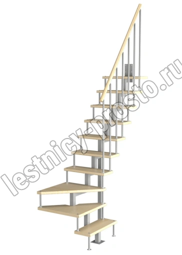 Модульная малогабаритная лестница Компакт 2250-2475, Серый, Бук, Нержавеющая сталь