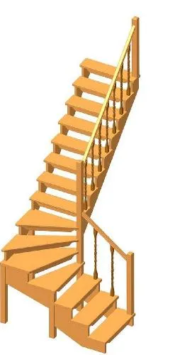 Комбинированная межэтажная лестница ЛЕС-05-3 (поворот 90°, h 3 м), Сосна