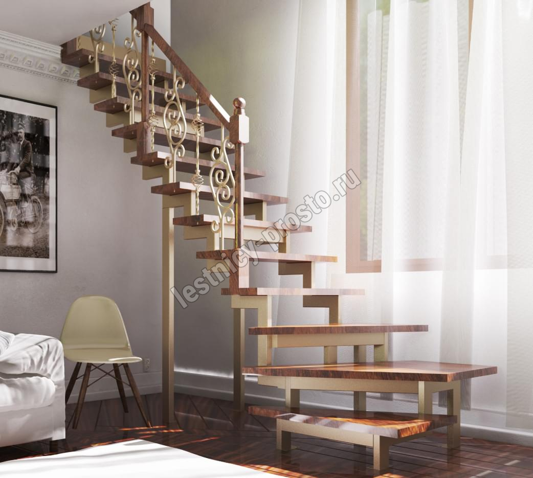 | Лестница Prosto Due 40×80 г-образная, ступени хвоя |