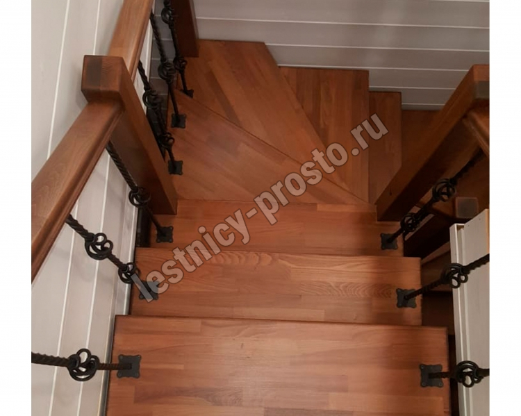 Ступени этого варианта лестницы изготовлены из сращенной сосны категории АВ, без какого-либо покрытия.