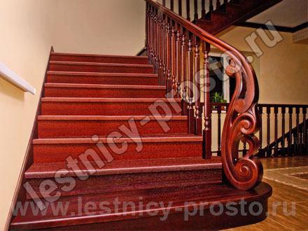 Ступени и перила из лиственницы, остальные элементы из сосны.
