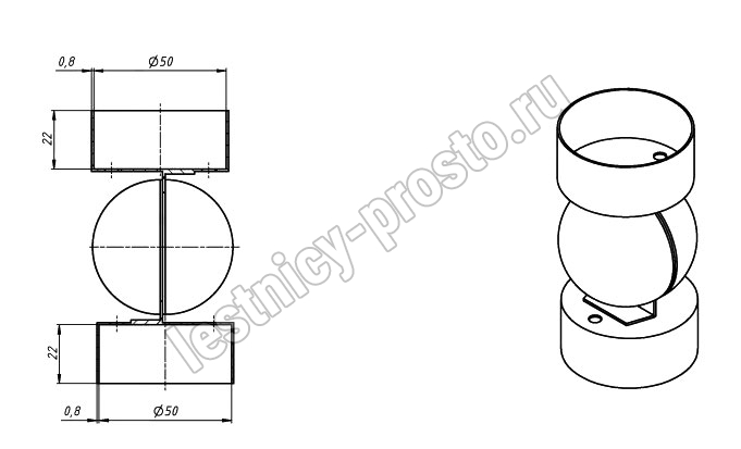 Применяется для соединения пластикового и деревянного поручней, ∅50 мм. Материал: AISI 304 - уличное применение. Толщина стенки: 0,8 мм.