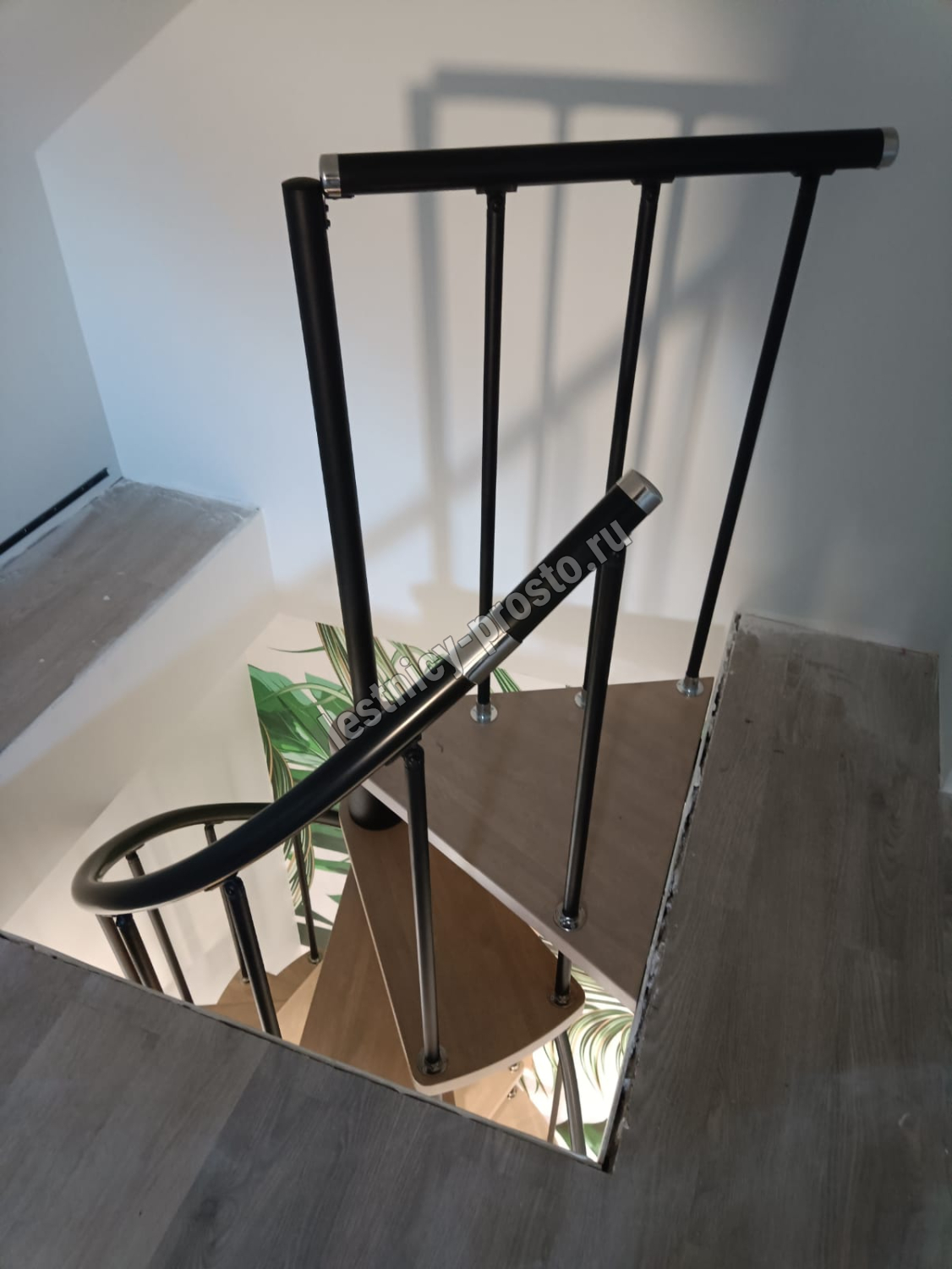 Стальные стойки Ф25мм (по одной на ступень) + ПВХ поручень Ф50.