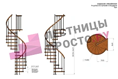 Винтовая лестница Prosto Spiral Black D140см, h303.9-348,1 см, бук