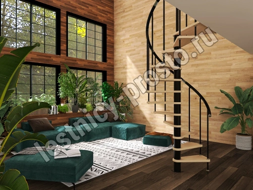 | Винтовая лестница Prosto Spiral Black D120см, h303.9-348,1 см, бук |