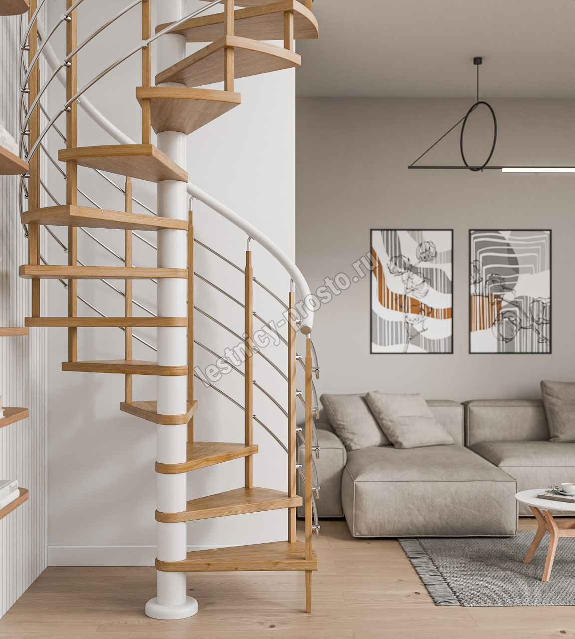 Центральный столб собирается из деревянных цилиндрических модулей (внутри металлическая шпилька), цвет белый.