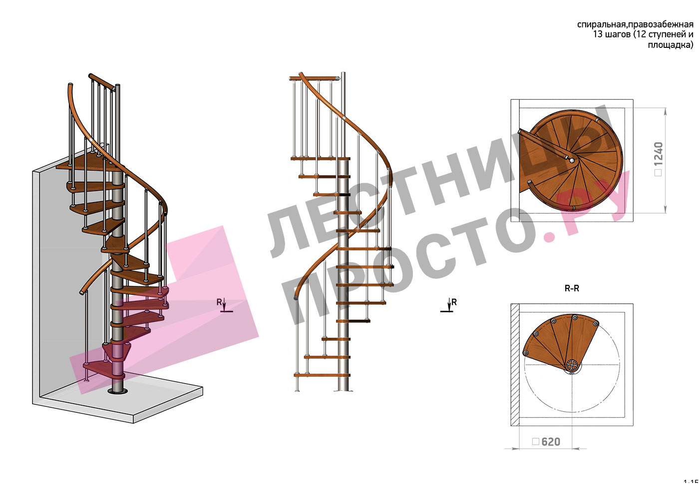 Винтовая лестница Prosto Spiral White D120см, h275.7-313,9 см