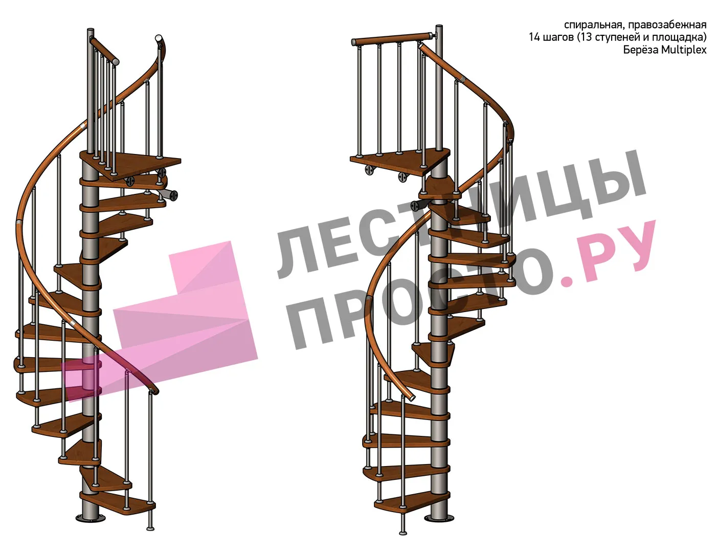 Винтовая лестница Prosto Spiral White D120см, h296.9-338.1 см