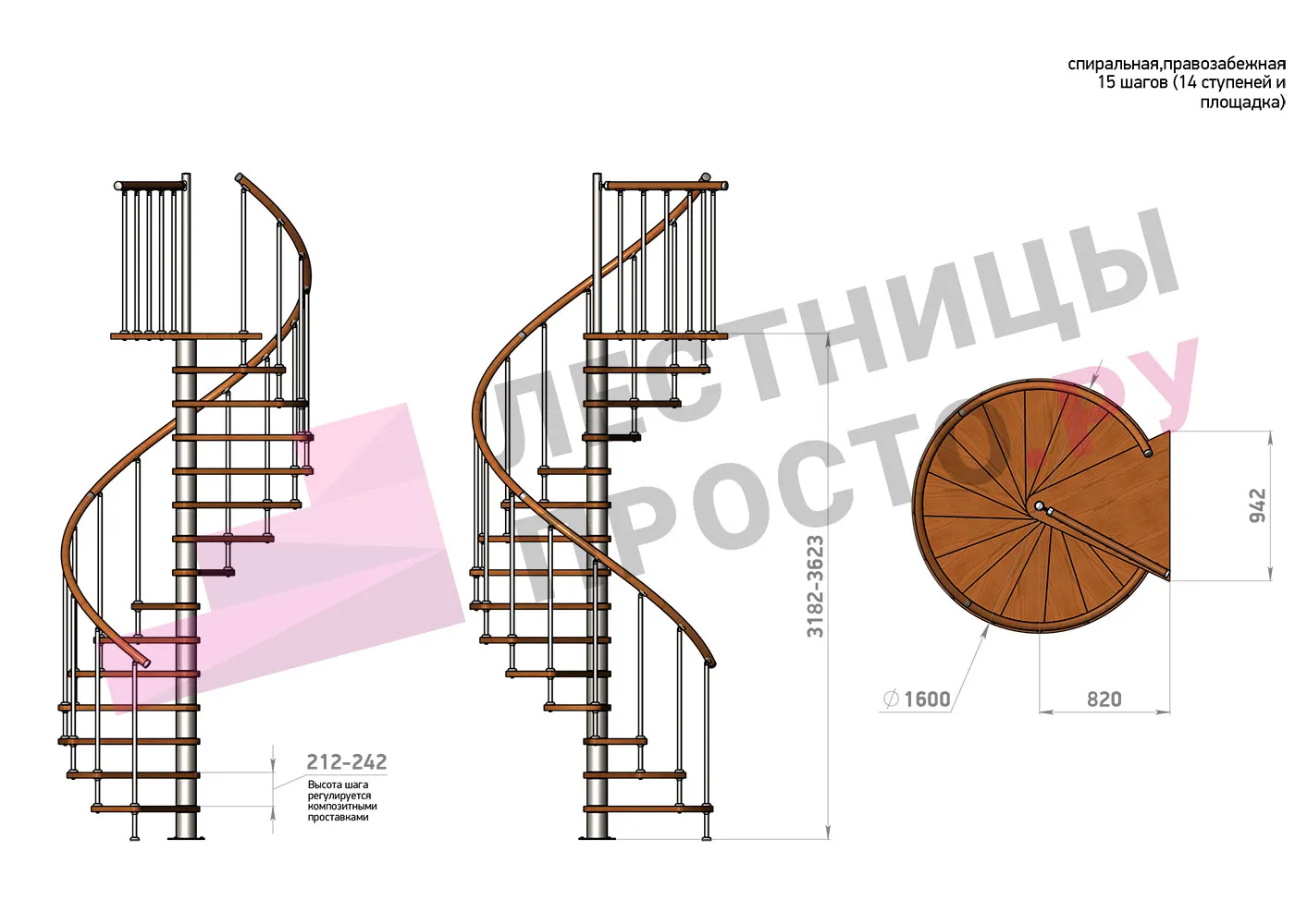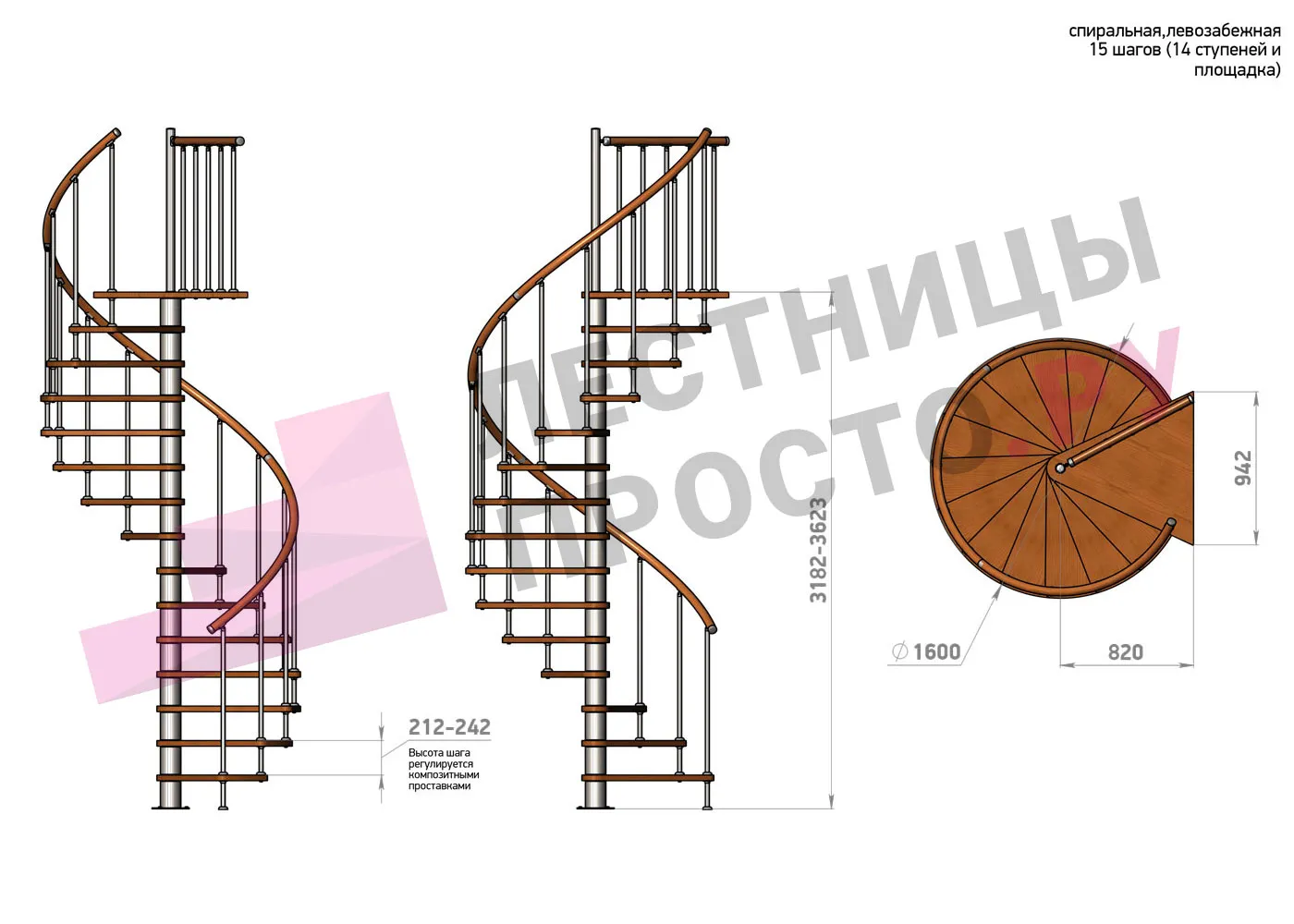 | Винтовая лестница Prosto Spiral White D160см, h318.2-362.3 см |