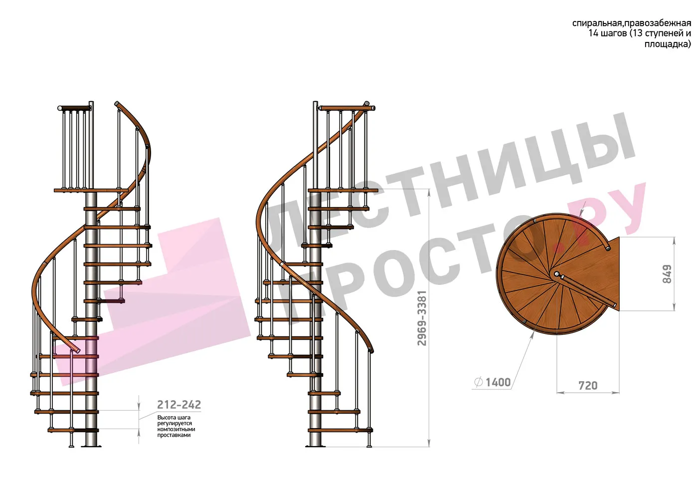 | Винтовая лестница Prosto Spiral White D140см, h254.5-289.8 см |
