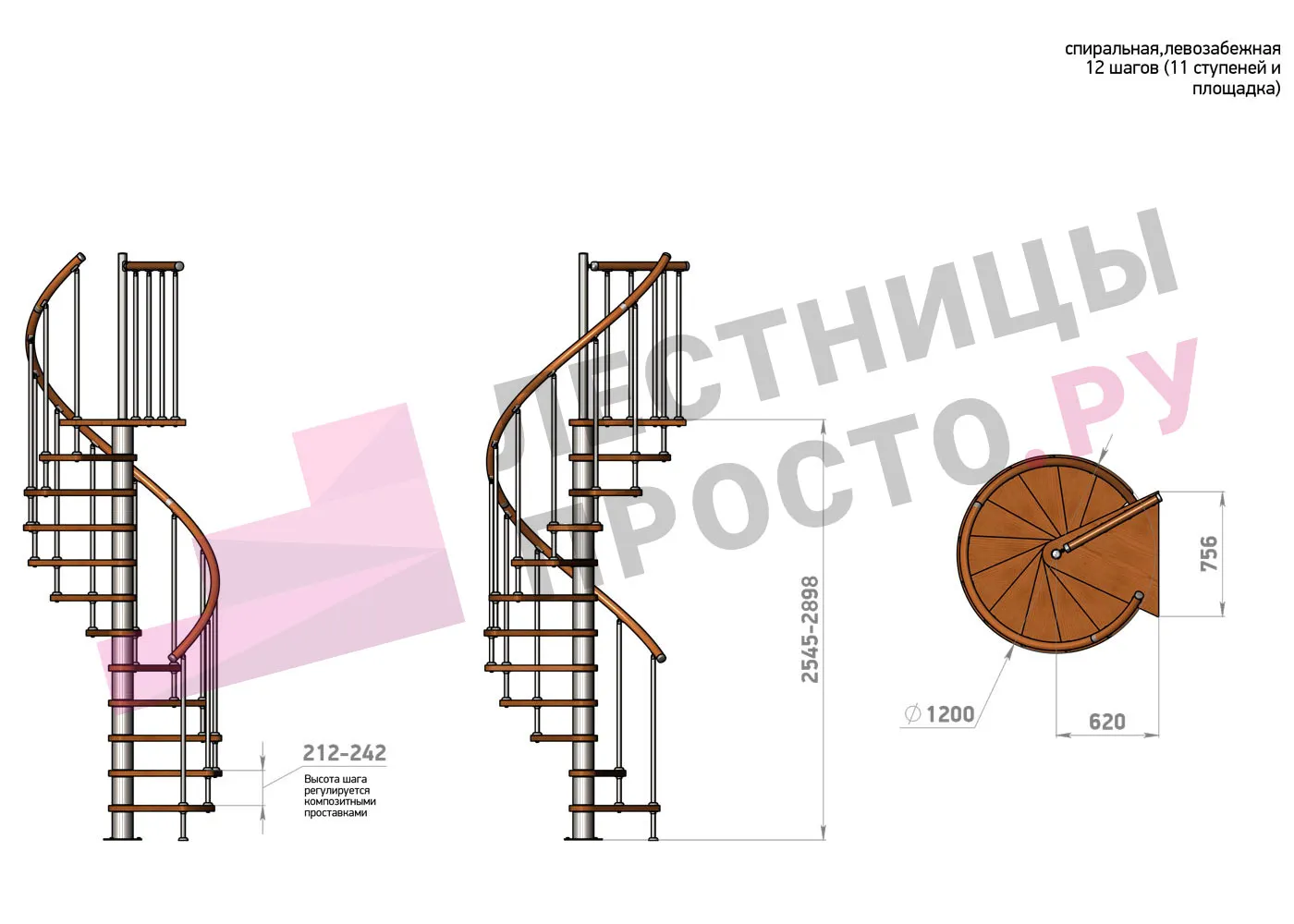 | Винтовая лестница Prosto Spiral White D120см, h254.5-289.8 см |