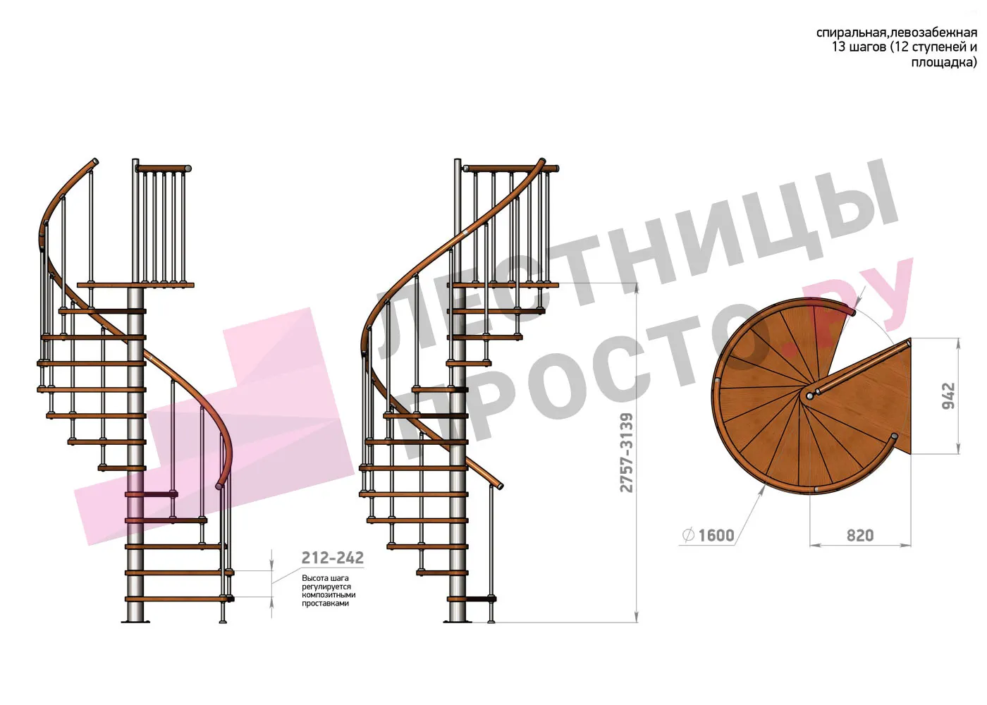 | Винтовая лестница Prosto Spiral White D160см, h275.7-313.9 см |