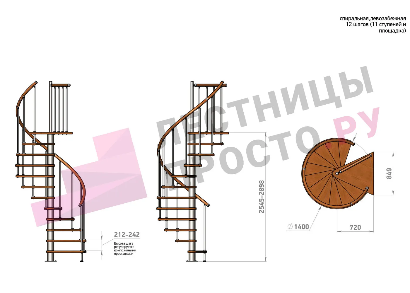 Высота ступеней регулируется с шагом 3 мм. в пределах 212-242 мм., благодаря чему, лестница прекрасно подгоняется под необходимую высоту.