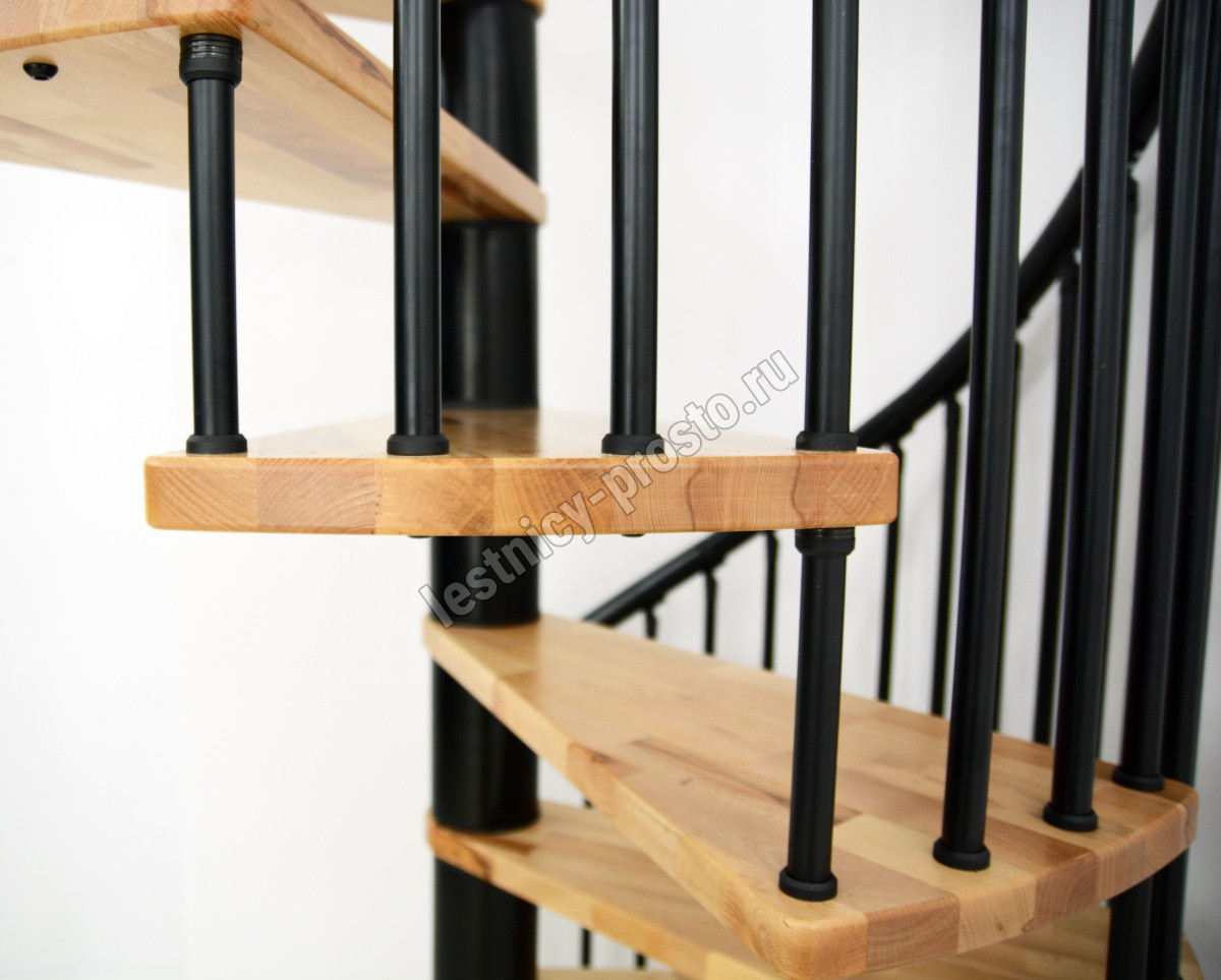 Благодаря возможности регулировать высоту шага с помощью пластиковых вставок (входят в базовый комплект), высоту лестницы можно варьировать в пределах от 2860 до 3090 мм. Кроме того, купив дополнительную секцию для этой лестницы, можно поднять высоту до 3320 мм. Ступени лестницы выполнены из сращенного бука и покрыты износостойким бесцветным лаком. Элементы конструкции, алюминиевые поручни оцинкованы и окрашены порошковым покрытием. Поручень и каркас одного цвета.