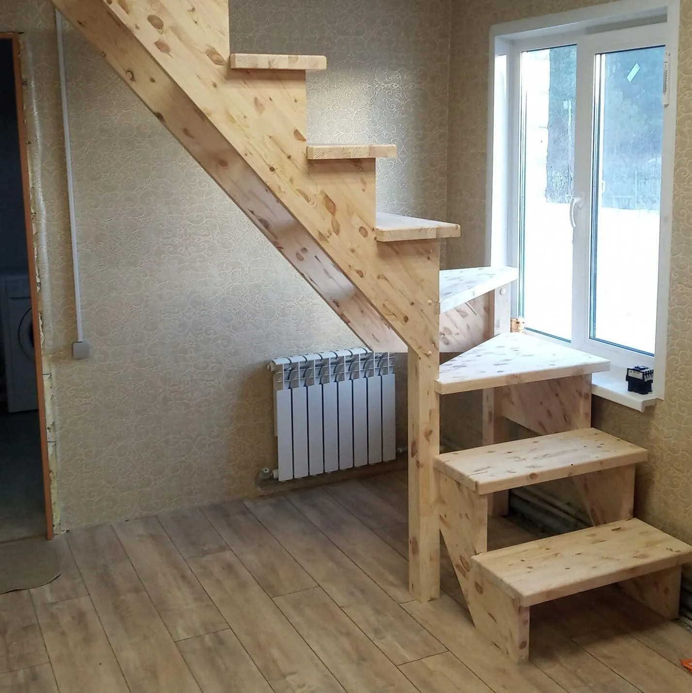 На начальном этапе определите, какая конструкция вам подойдёт. Если в доме много места, а лестницей будут пользоваться часто, остановитесь на маршевой прямой или поворотной с ограждением. Одномаршевый вариант без промежуточной площадки - самый простой для непрофессионала, так как для его реализации требуется минимум замеров, расчётов и материалов.