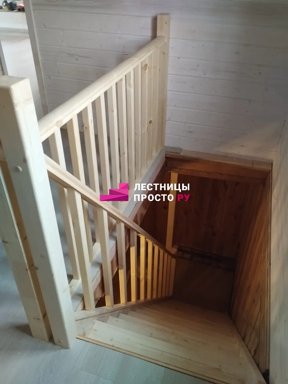 Лестница из сосны с поворотом без покраски