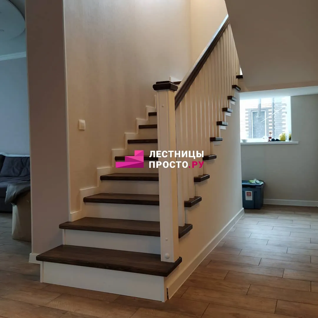 Лестница на второй этаж из лиственницы по индивидуальному проекту LP-000468
