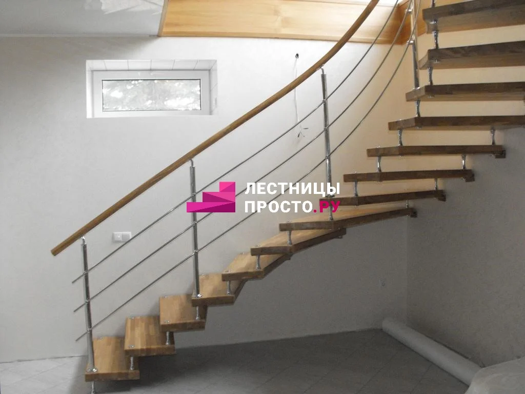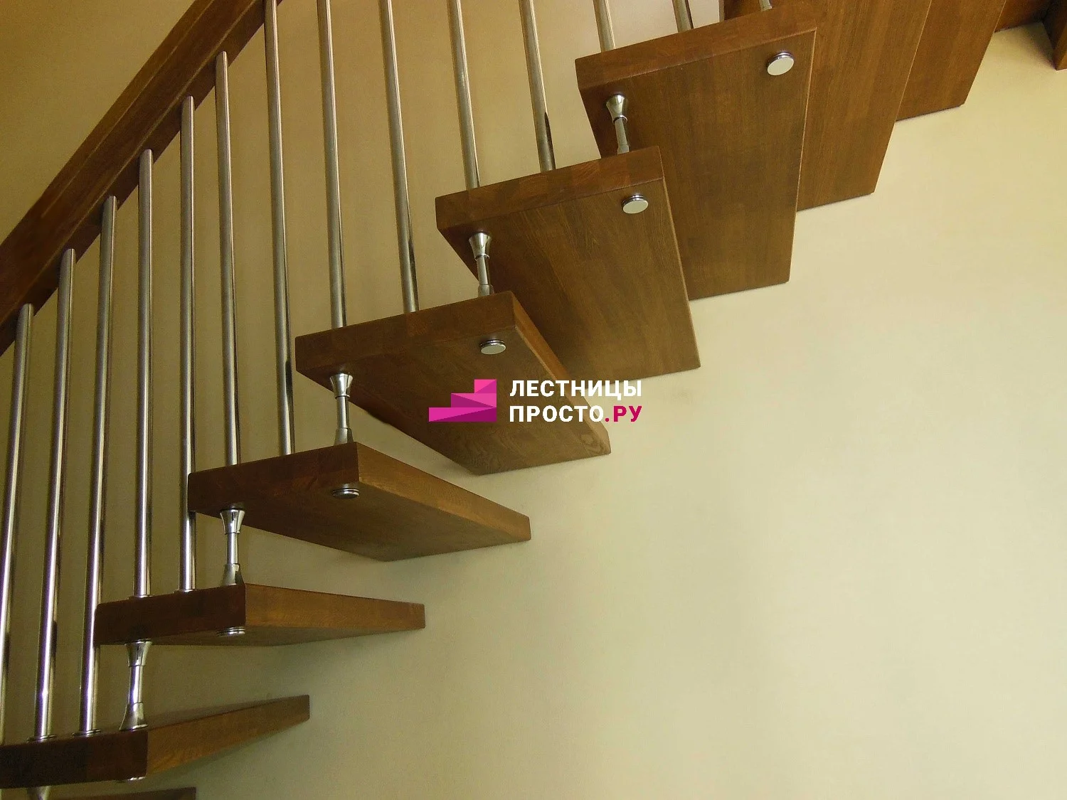 Лестница на центральном каркасе г-обр. металлик, ступени лиственница, LP-151021
